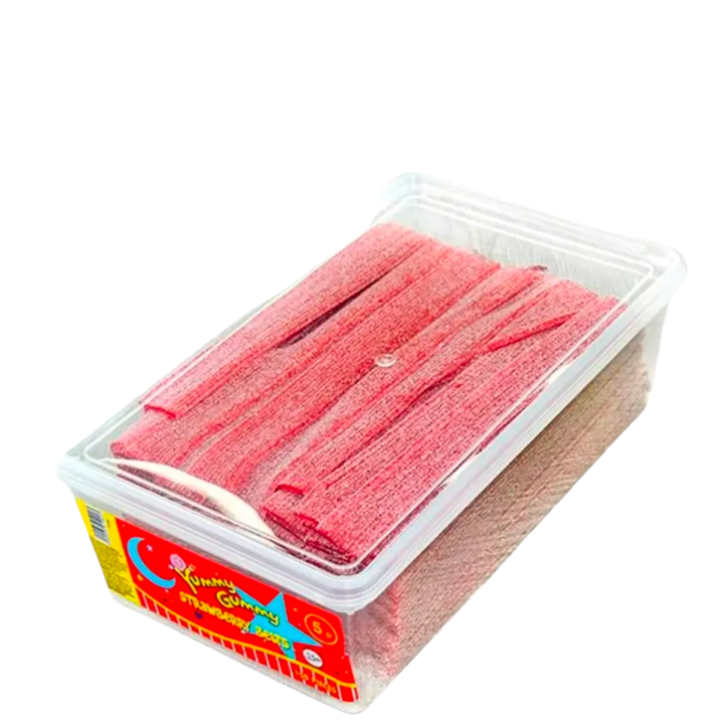 Yummy Gummy Fizzy Belts Tubs (120 Pieces). Suitable For Vegetarians. Halal. Strawberry Flavour.