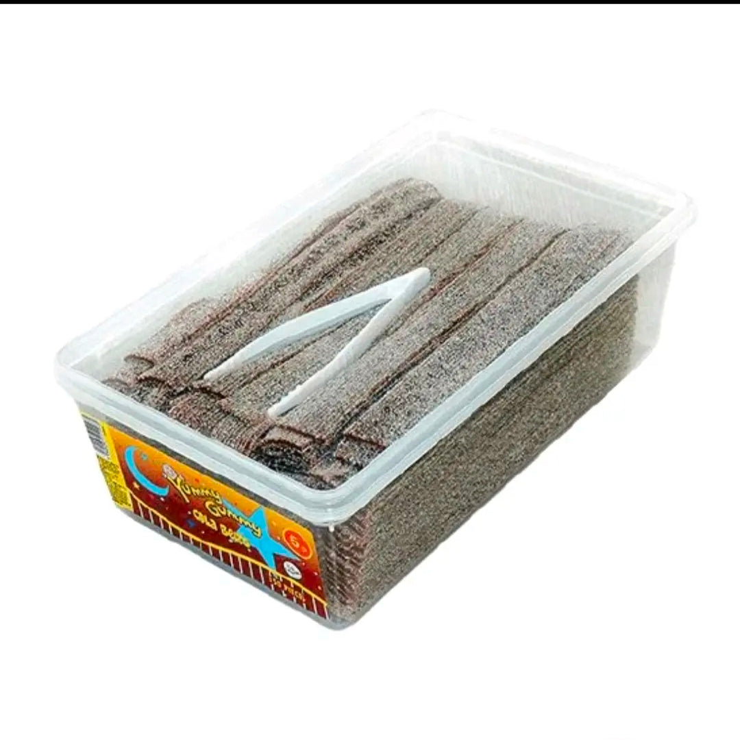 Yummy Gummy Fizzy Belts Tubs (120 Pieces). Suitable For Vegetarians. Halal. Cola Flavour.
